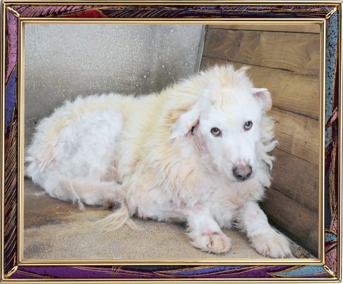 Nein? Wir auch nicht! "Haigen ist zum Anbeißen, wawauwuschelig und einfach eine zutrauliche, herzerwärmende Augenweide!", so durften wir ihn im Jahr 2022 treffend beschreiben. Heute wirkt das einstige Portrait wie ein Bild, dessen Konturen die Zeit verwischt hat. Was jetzt vor Ihnen liegt, ist nurmehr die Hülle eines Hundes, es ist ein beschädigter Körper, in den Jahre der Gleichgültigkeit und Vernachlässigung eingeritzt sind - nicht blutig, sondern in Krusten, Narben und Schmerzen, in der Art, wie der Rücken durchhängt und die Augen schwer geworden sind.